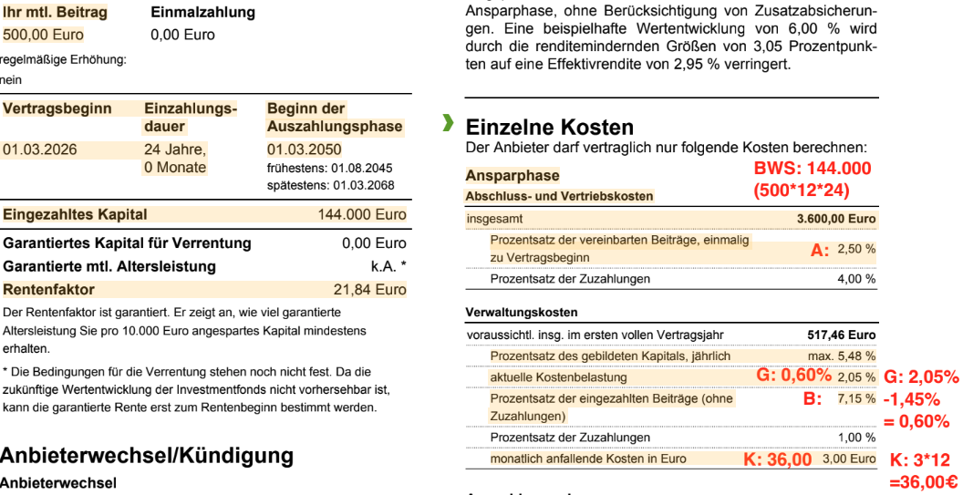 500,00 Euro x 12 Monate = 6.000,00 Euro Jahresbeitrag x 24 Jahre Beitragszahldauer