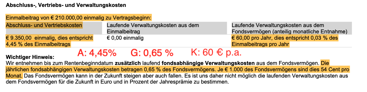 In unserem Vertragsangebot der Standard Life ParkAllee haben wir jährliche Kappa-Kosten in Höhe 60,00 Euro p.a. ermittelt.