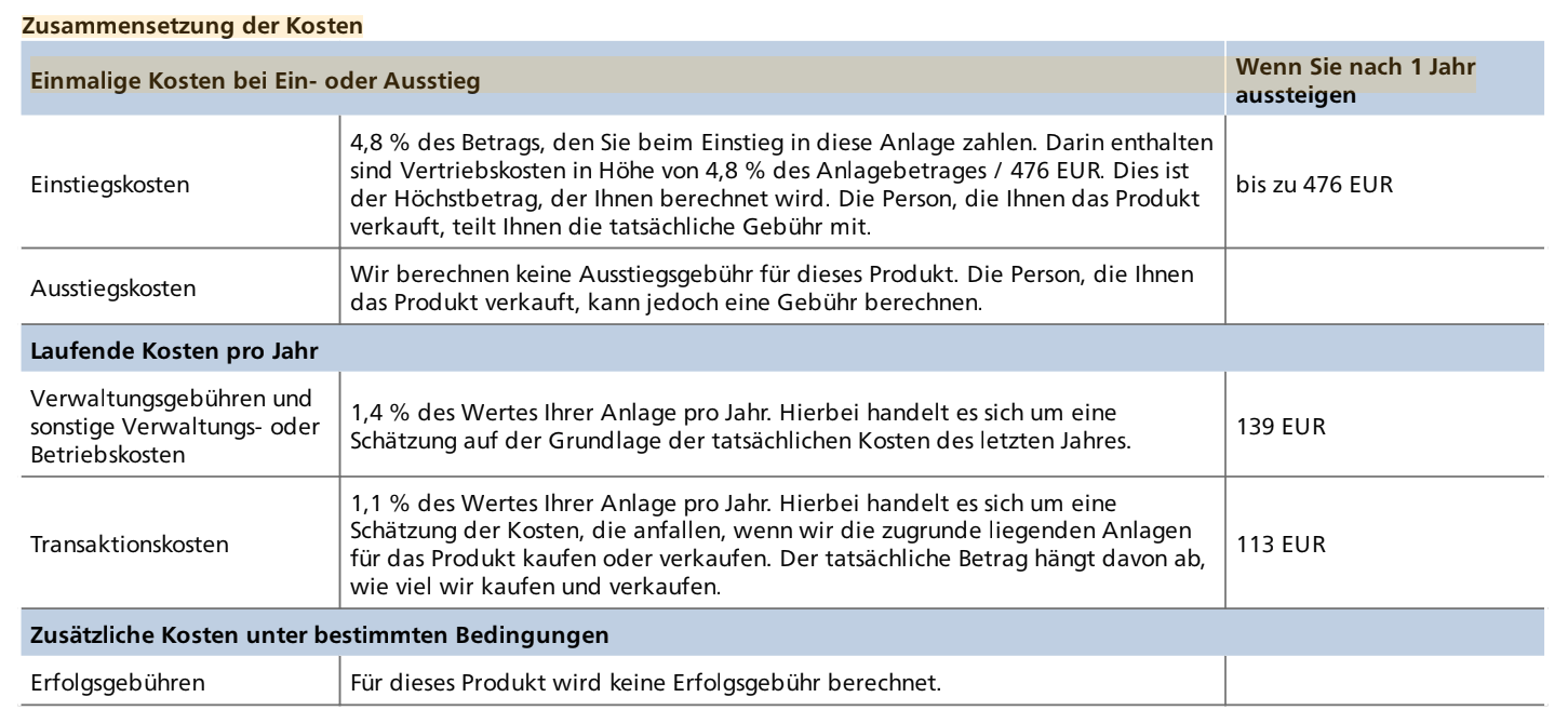 In unserem Vertragsangebot der R+V StuttgartConcept haben wir bei jedem Monatsbeitrag von 150 Euro Beta-Kosten in Höhe von 3,00 Prozent ermittelt.